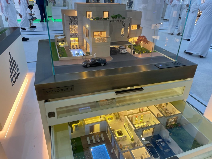 - يتميز الماكيت بوجود إضاءة داخلية وخارجية تعكس شكل الفيلا في الليل.