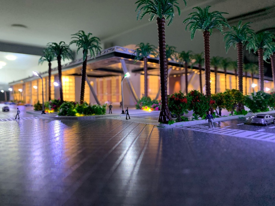 - كما توجد سيارات مصغرة في الماكيت لتوضيح حركة المرور حول الموقع.