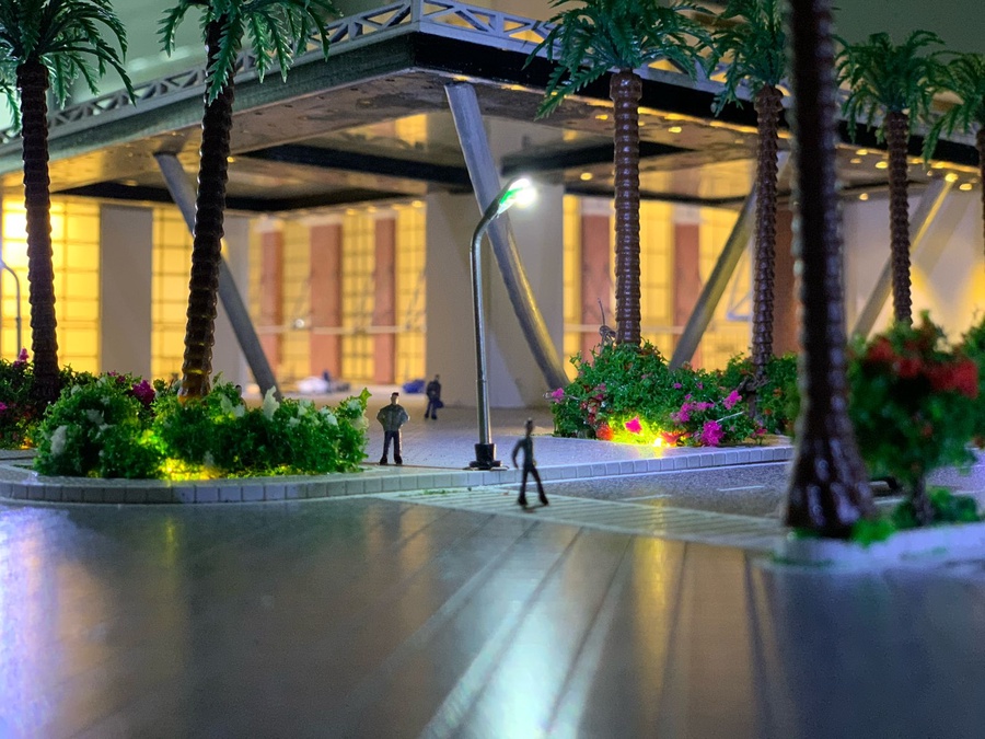 - يحتوي الماكيت على نظام إضاءة داخلي وخارجي يبرز تفاصيل المبنى.