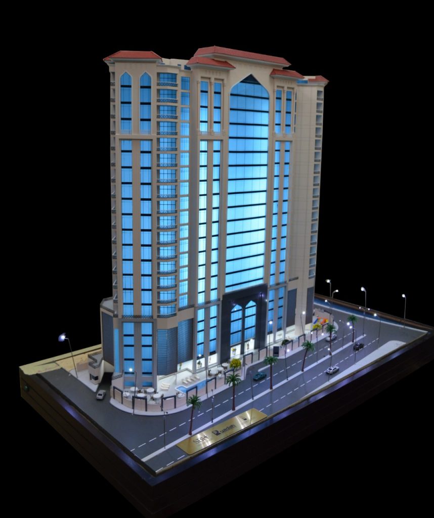 الماكيت تم تنفيذه بأعلى درجات الدقة لإظهار النسب المعمارية، تفاصيل الواجهات، والعلاقة بين المبنى والمحيط الخارجي، مما يمنح تصورًا واقعيًا متكاملًا قبل التنفيذ.