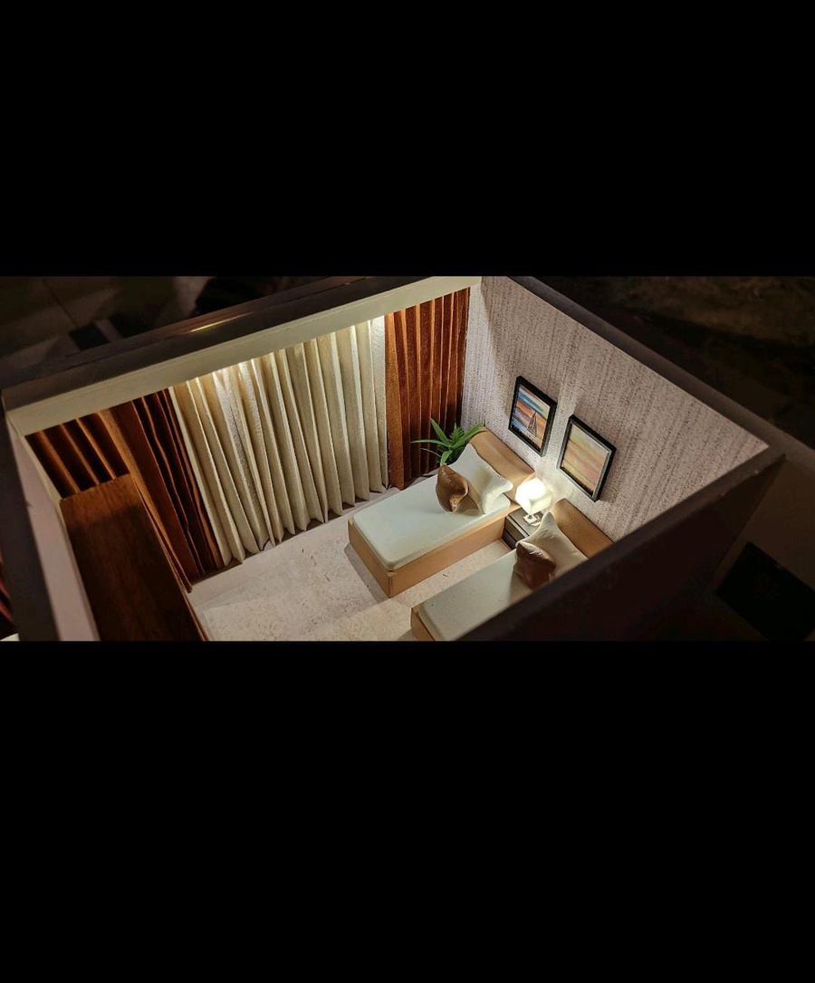 - يتميز الماكيت بوجود إضاءة داخلية دافئة تعطي إحساساً بالراحة والهدوء.