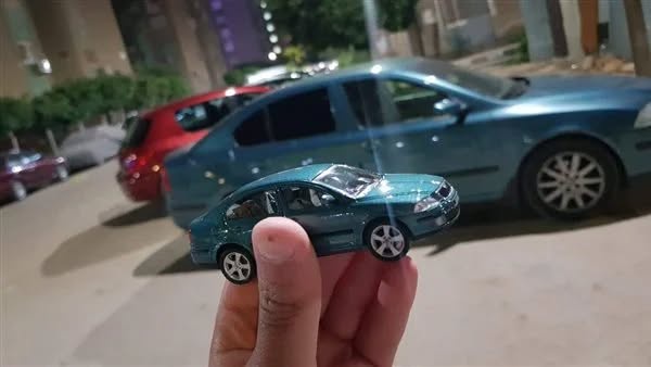 لقطة مميزة تُبرز جمال الماكيت عند مقارنته بالحجم الحقيقي، حيث تتجسد الدقة والإتقان في نموذج مصغّر يعكس تفاصيل السيارة الأصلية بكل احترافية.